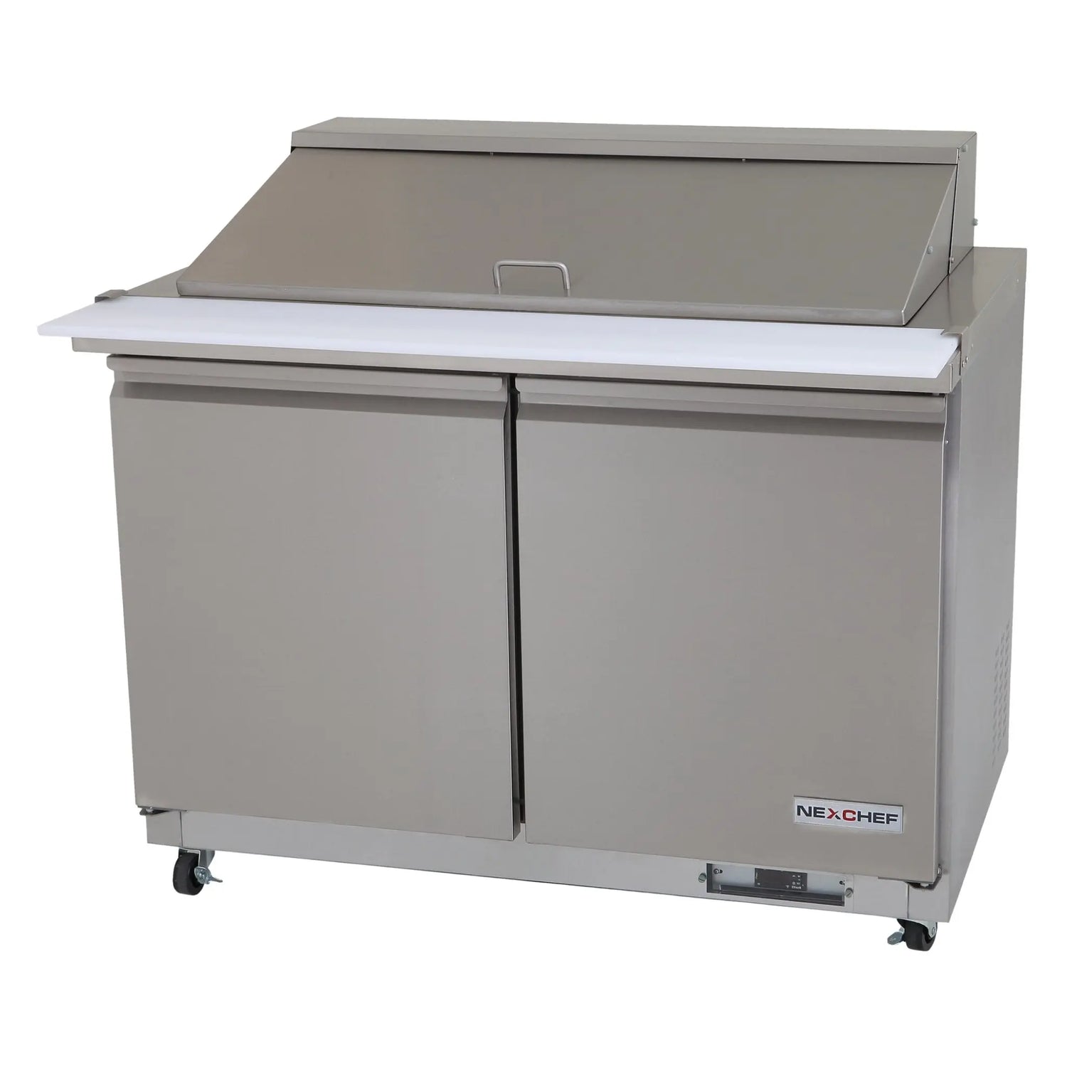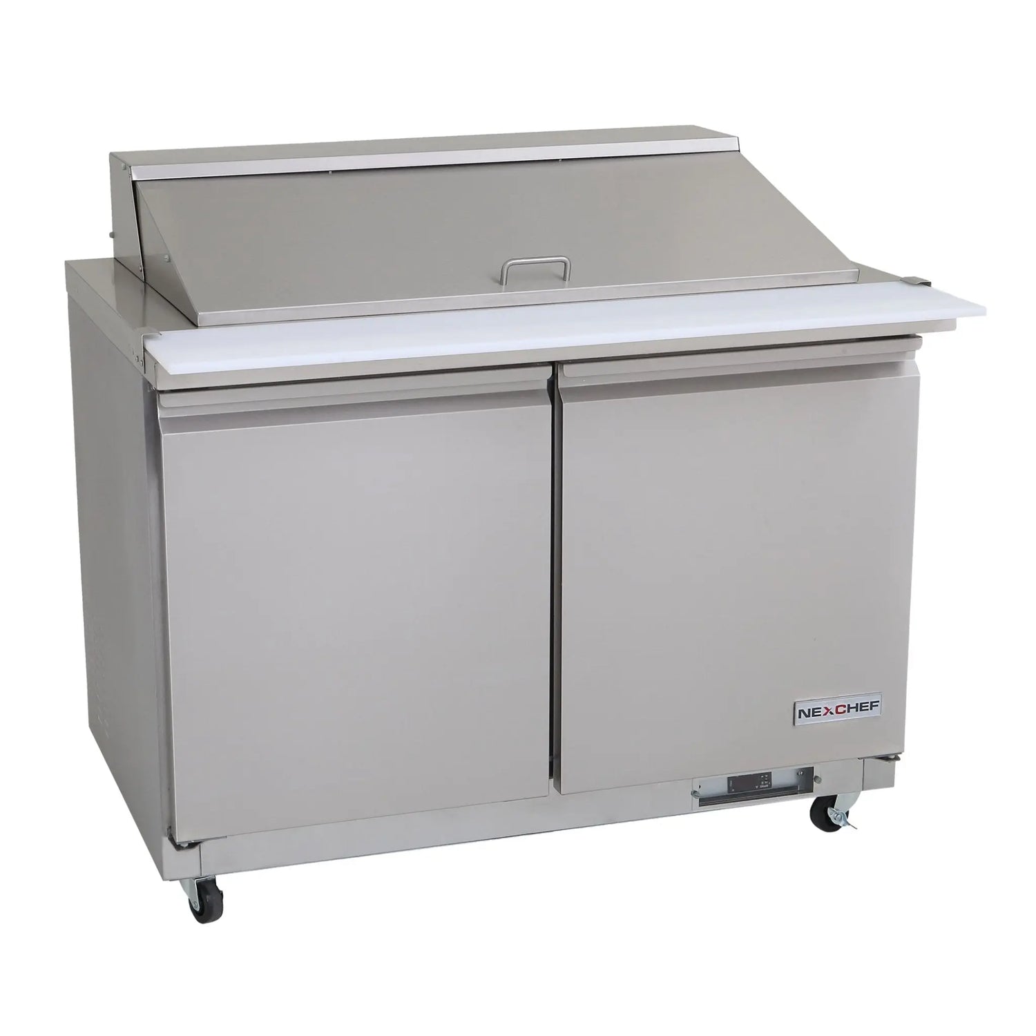 NexChef SUM48 Refrigerador comercial Mega Top para preparación de sándwiches/ensaladas de 48", base refrigerada de 2 puertas