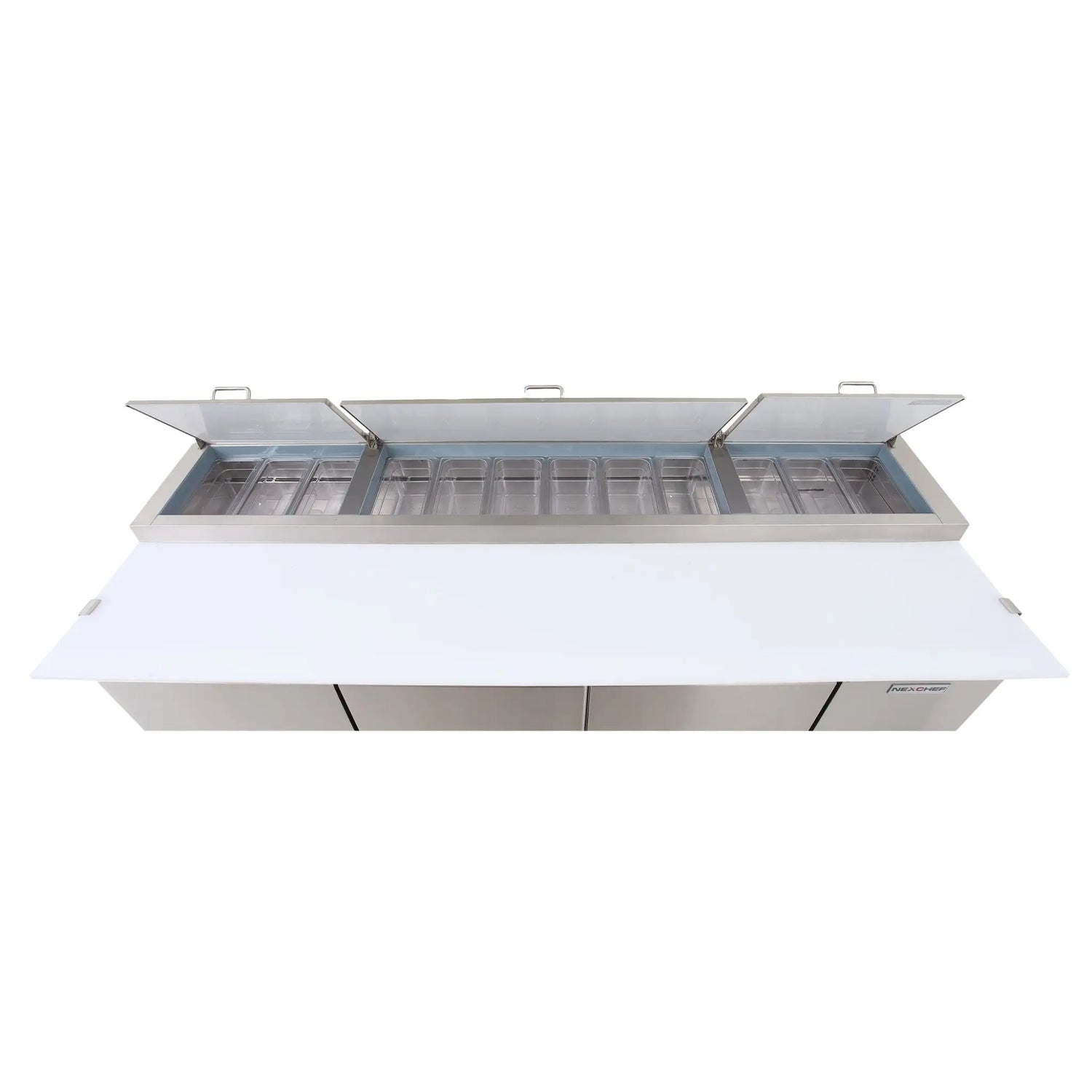 NexChef SUM72 Refrigerador comercial Mega Top para preparación de sándwiches/ensaladas de 72", base refrigerada de 3 puertas