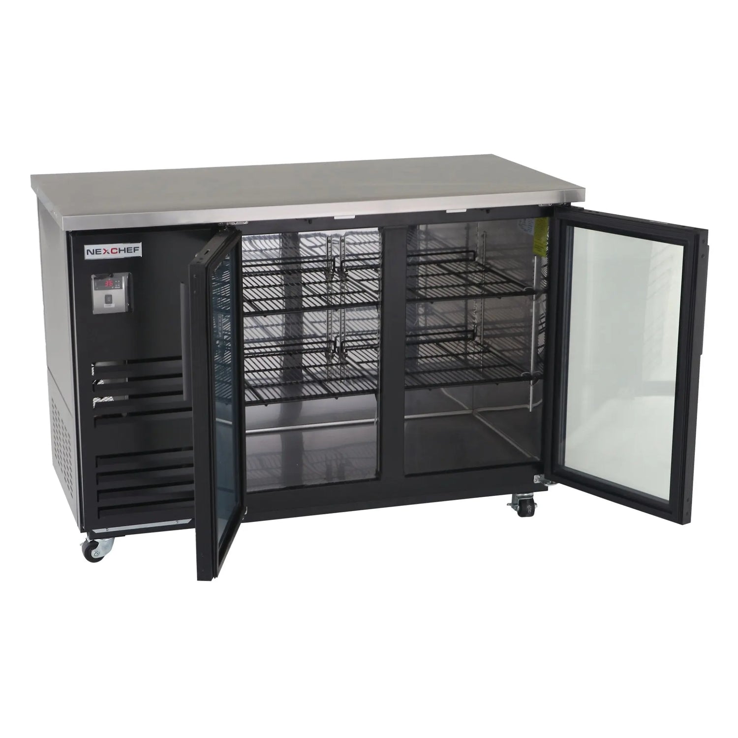NexChef B60-G2 Commercial 60" Glass Back Bar Refrigerator, Black Exterior, 2 Glass Doors, Counter Height, LED Lighting