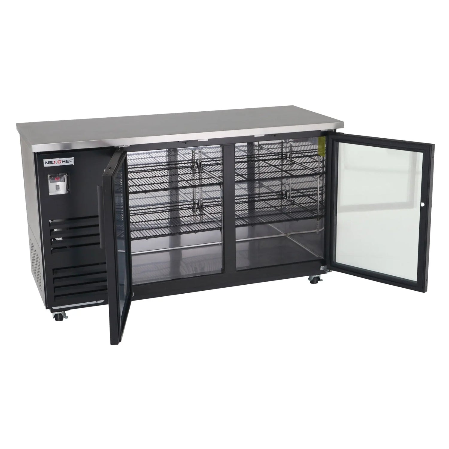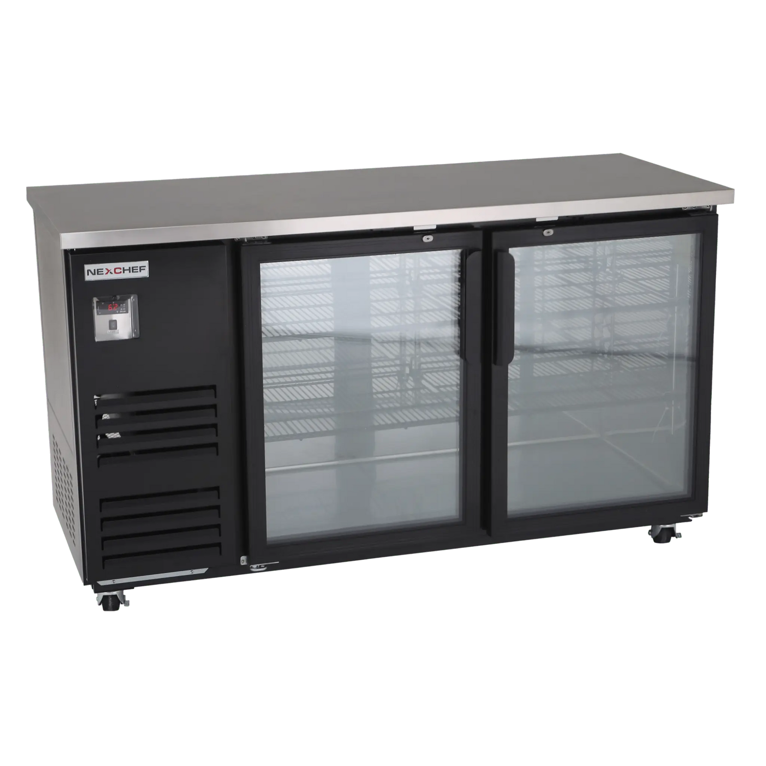 NexChef B70-G2 Commercial 70" Glass Back Bar Refrigerator, Black Exterior, Two Glass Doors, Counter Height, LED Lighting