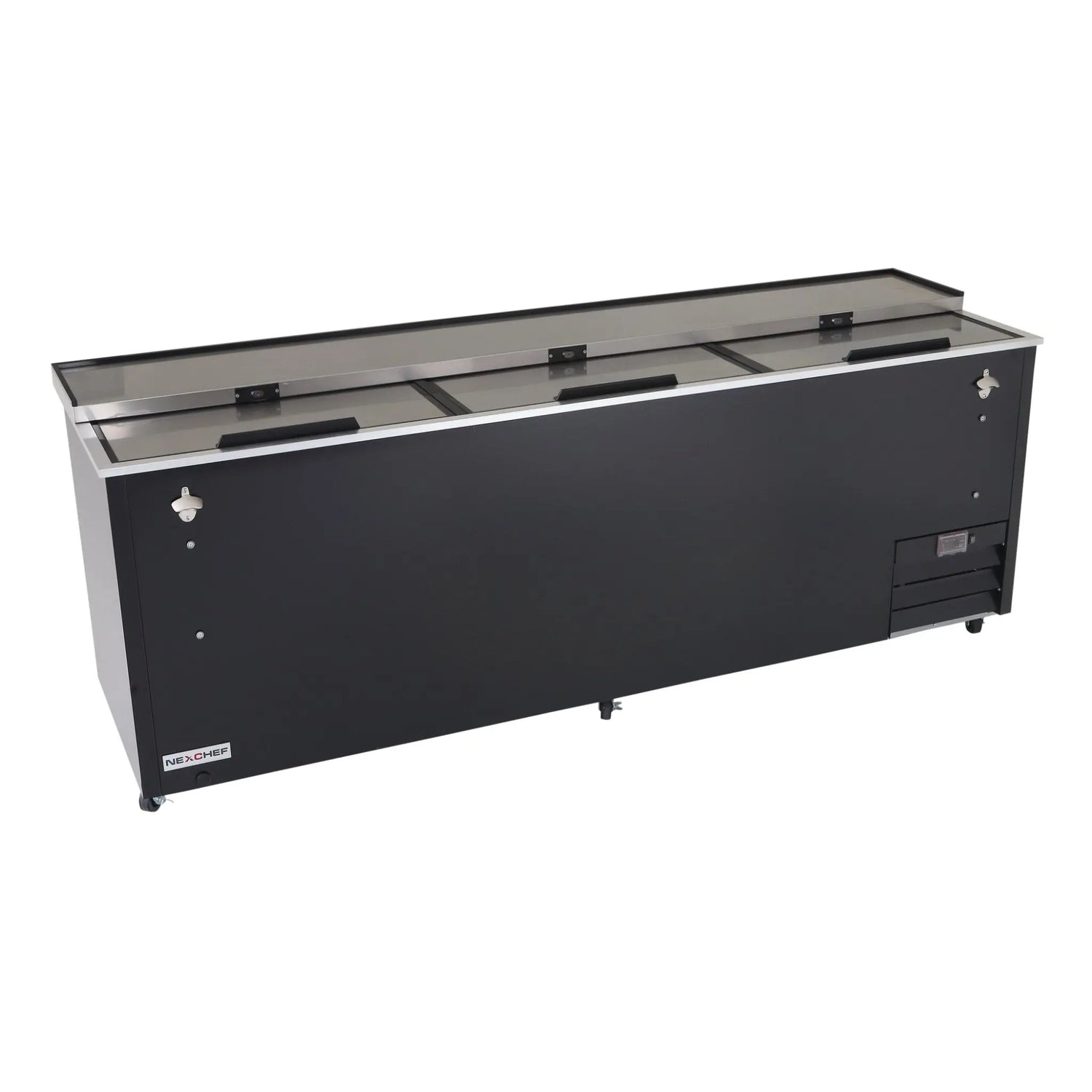 NexChef BT94 Commercial 95" Horizontal Bottle Cooler, Black Exterior, 3 Slide Tops