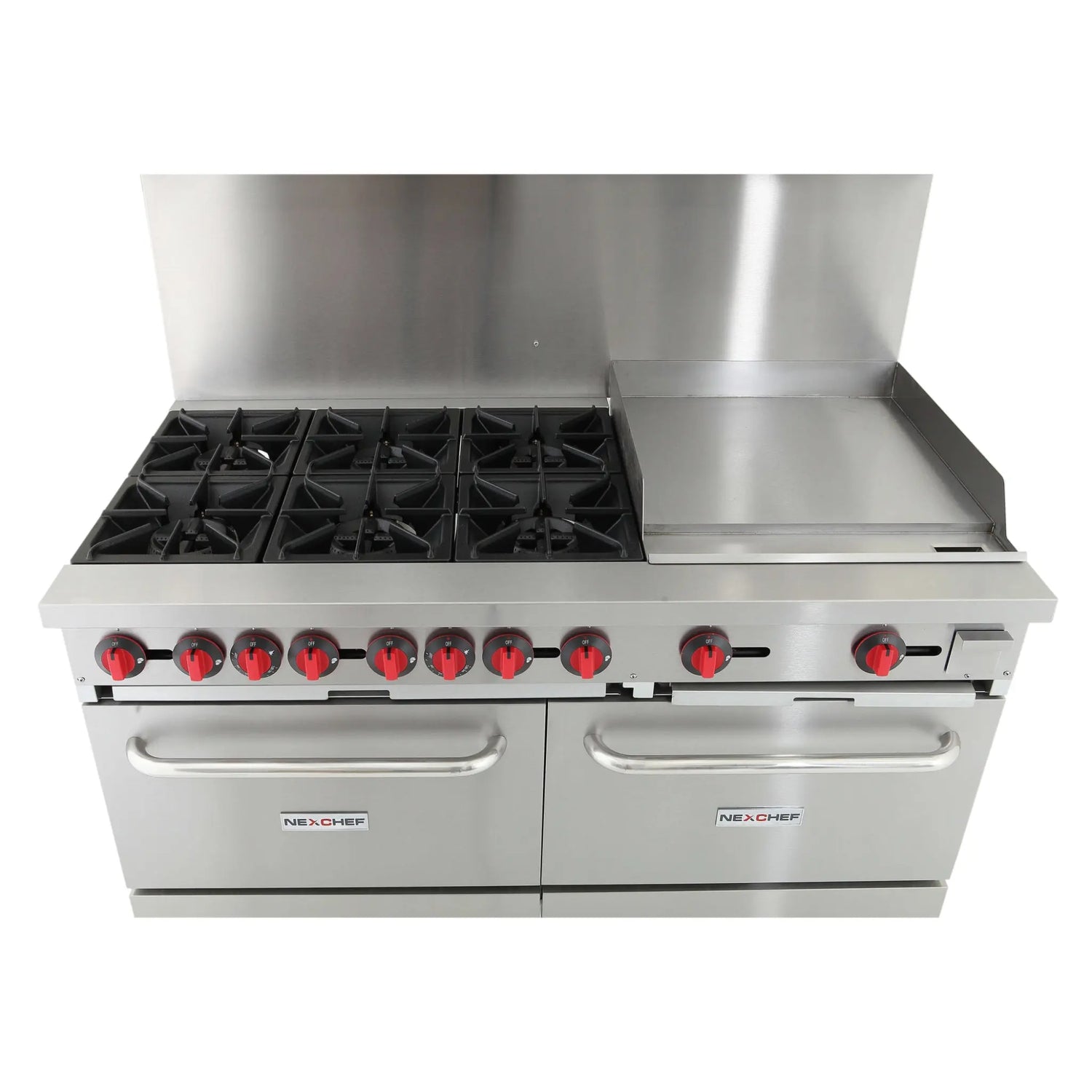 NexChef R60G Commercial 60" Gas Range, 6 Burners with 24" Griddle, Two Standard Ovens, NG/LP - 280,000 BTU